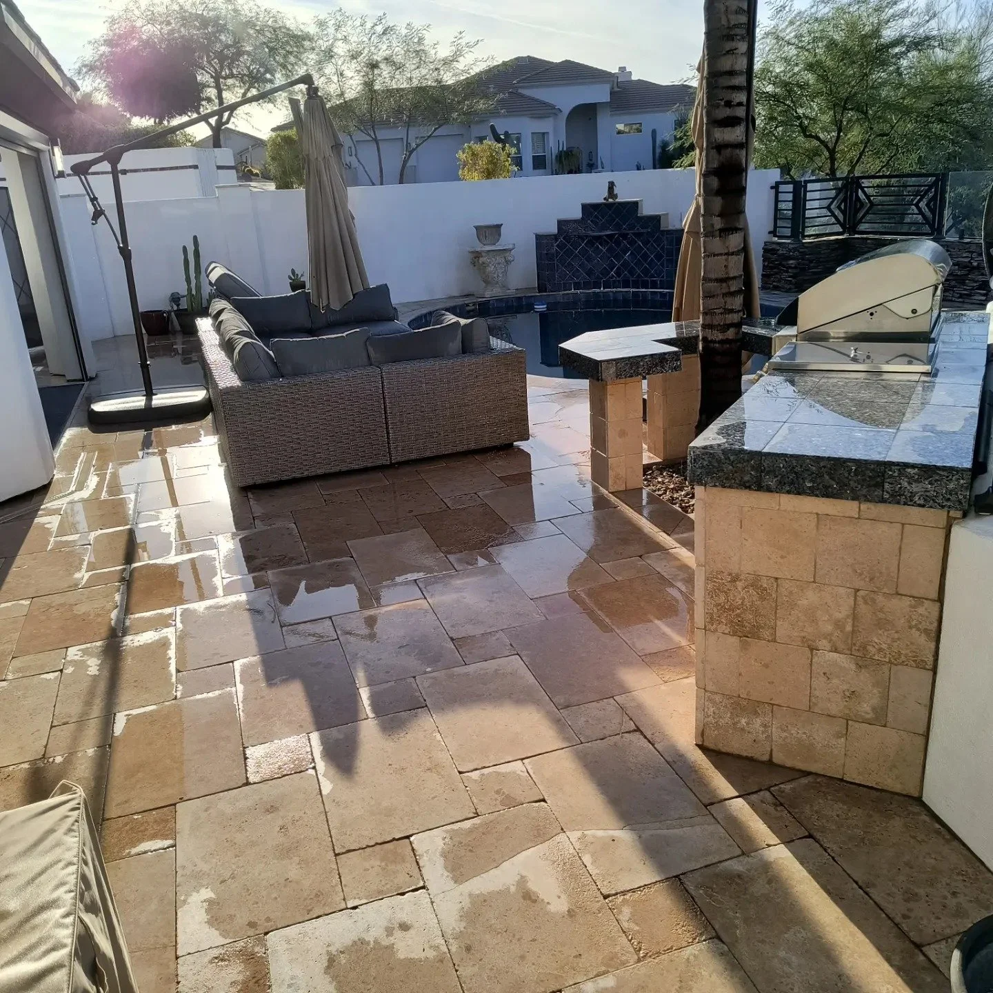 Tired of paying HOA fees? Want to see a beautiful driveway? Hot water pressure washing is a powerful and effective solution for cleaning pavers, concrete, epoxy finished floors and more. Whether it be wanting a space to look and feel freshly clean for the backyard cook or increasing curb appeal, power washing is effective tool to restoring the original look!